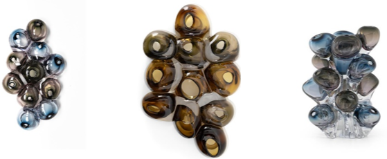 BLOOM Wallpiece: An organic sculptural composition meticulously crafted by layering individually blown glass pod-shapes. Each multi-dimensional form is precision-cut and polished, offering a sophisticated, nature-inspired focal point for any interior surface.