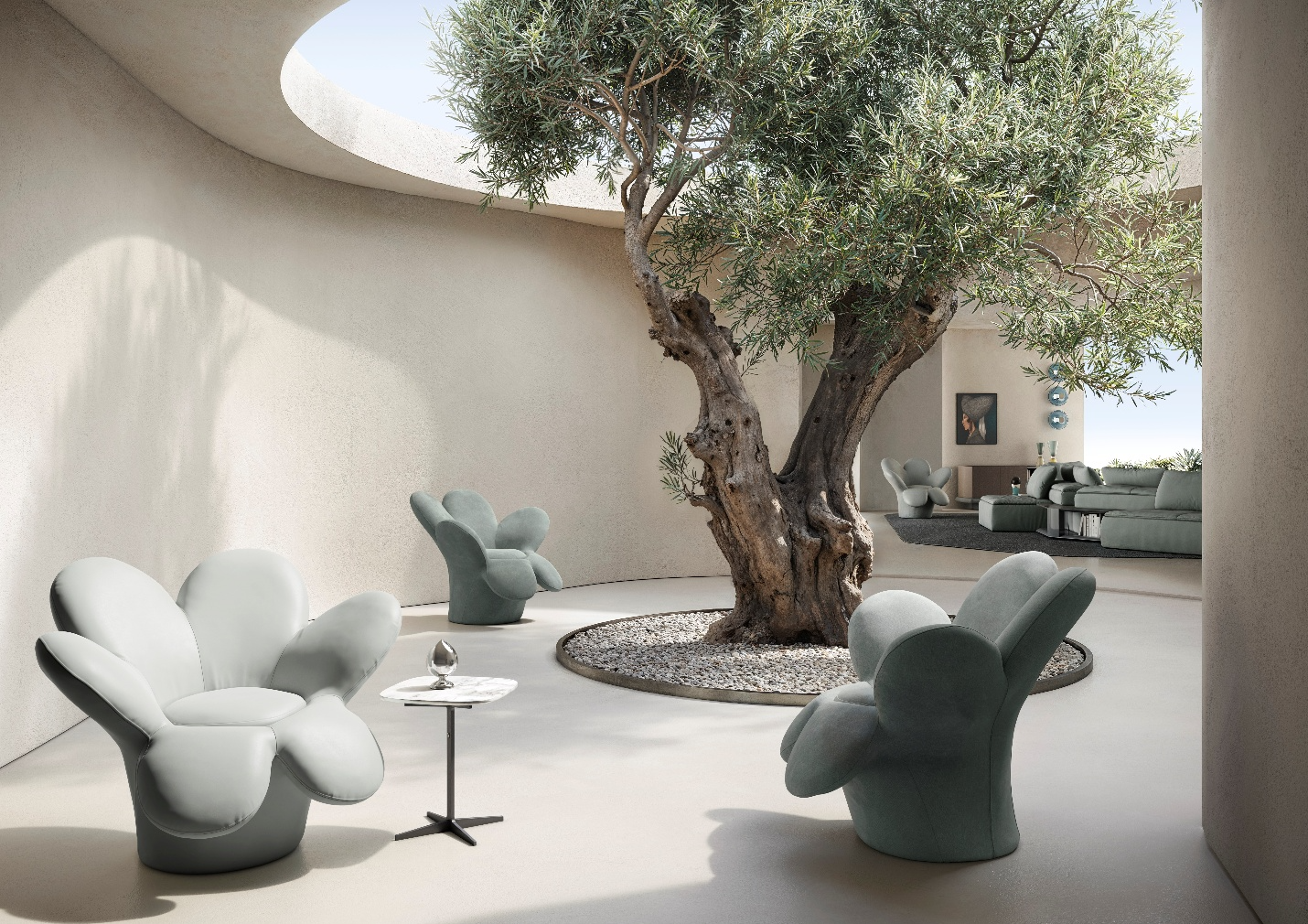 Designed by the acclaimed Marcantonio, the Fiore armchair is a masterpiece that blurs the boundary between functional furniture and fine sculpture. Inspired by the delicate strength of petals and the organic flow of nature, Fiore envelops the body in fluid, sinuous lines. Reflecting Natuzzi’s Apulian heritage through a poetic fusion of artisanal precision and emotional design, the piece invites the softness and growth of the natural world into the heart of the home.