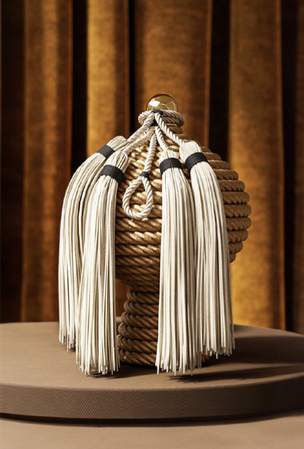 لمسة من الأناقة النابضة بالرقي ورمز الحياة الجديدة وإعادة ابتكار لتقليد جلب الحظ في منطقة بوليّا الإيطالية، يشبه كوز الصنوبر حيث قامت بوزولي بكسوة الهيكل الخشبي بخيوط “الفيسكوز” النابضة بالحياة وتفاصيل من النحاس، لتمزج بين عصرية الأنسجة والالتزام بالمواد الطبيعية.
