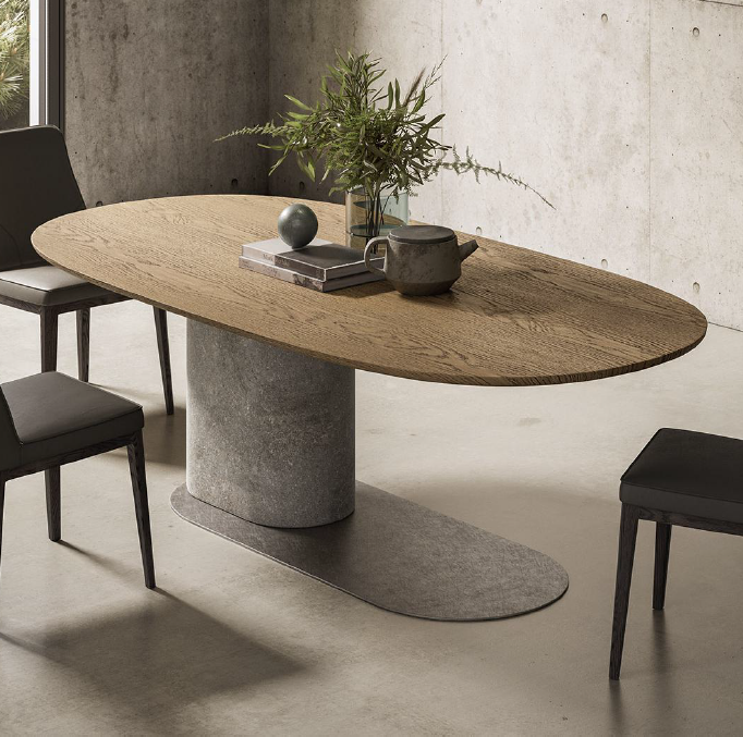 طاولة الطعام «أومبرا» بتصميم كلاوديو بيليني: قطعة فنية تجمع بين الجمال والقيم البيئية. تتميز بأرجل غير متماثلة تضفي عليها طابعًا عصريًا فريدًا، وقد تم تشطيبها يدويًا باستخدام مواد صديقة للبيئة، من بينها مزيج طبيعي مستدام يتكوّن من الكوارتز وغبار الفخار والرخام وعرق اللؤلؤ. ويؤكد هذا التصميم إمكانية ابتكار قطع كبيرة وأنيقة بمواد تحافظ على البيئة وتدعم الاستدامة.