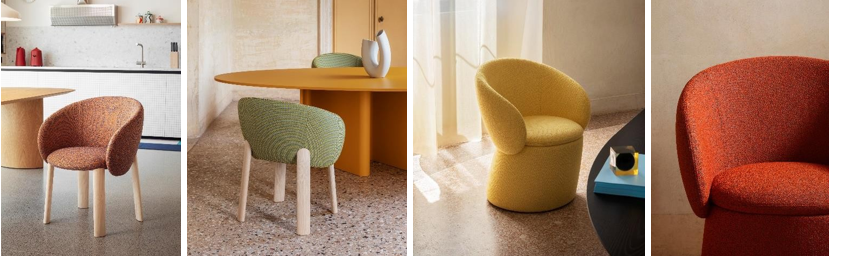 The Nebula Wood and Nebula Monaca seating concepts offer a “cloud-like” embrace. With teardrop arms and 30 fabric options, these seats are designed for authentic wellbeing. The Monaca version, featuring a fully recyclable shell and wheels for mobility, ensures that your space remains as dynamic as your guest list.