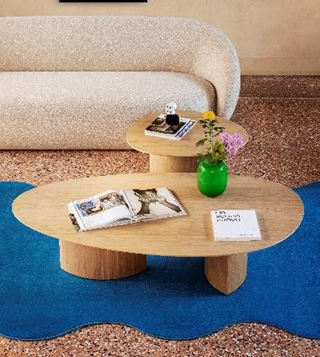 Plautino: A study in balance. These modular coffee tables feature organic, loosely oval tops—the ideal obstacle-free surface for letting ideas (and hospitality) flow freely.
